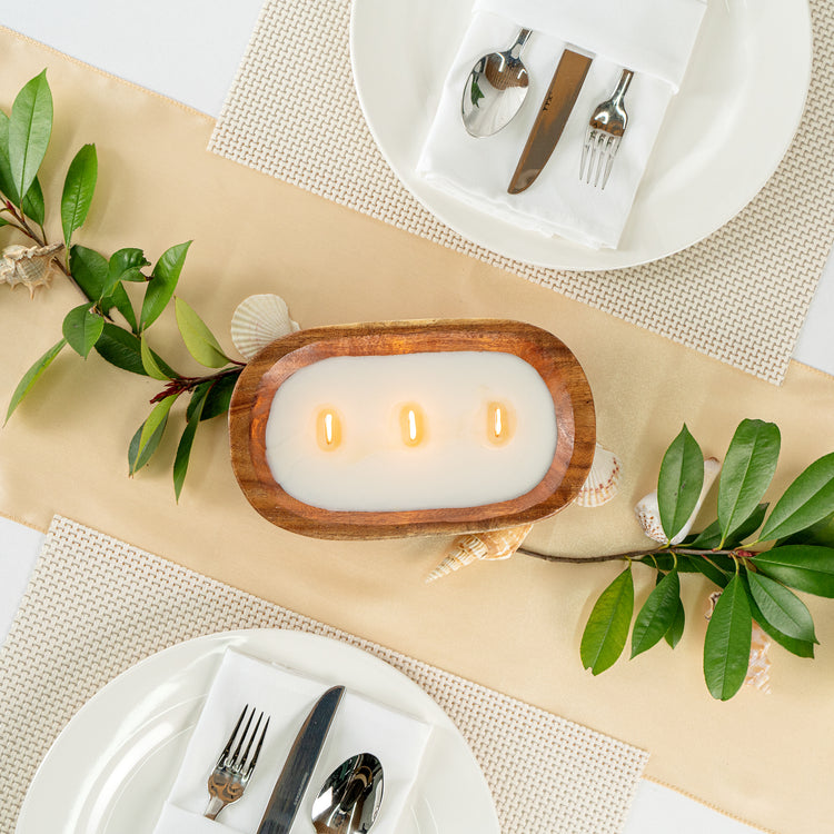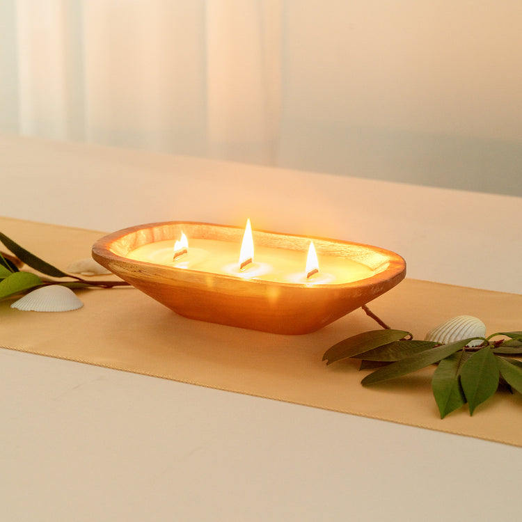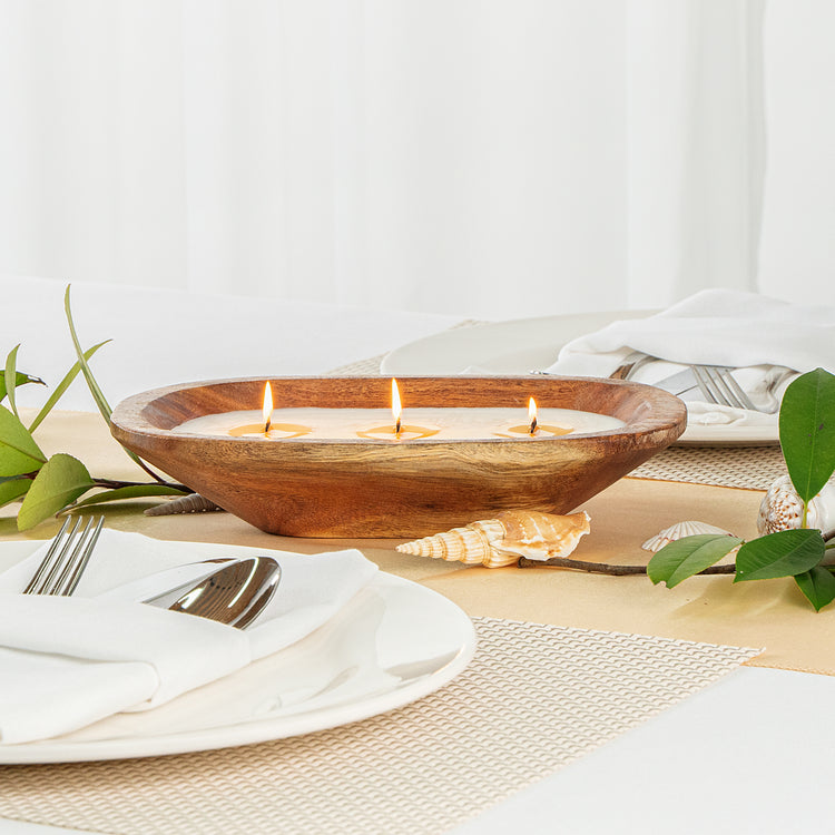 Add a touch of elegance and rustic charm to your establishment with our Coco Casa Handmade Wood Dough Bowl Candle. This unique candle is meticulously hand-poured into a beautiful wooden bowl, creating a captivating centerpiece that doubles as a delightful source of ambient light. The enchanting sandalwood fragrance envelops your space in a soothing aroma, enhancing the dining experience for your customers. Crafted from a double wax blend of soy and coconut, this dough bowl candle burns cleanly, offering up to 18 hours of flickering charm. The three wooden wicks of this scented candle add a touch of natural beauty and ensure an even burn for the life of the candle. This handmade scented candle has an eco-friendly design. The wooden bowl of this wax candle is not just sustainable, but it is sourced from reclaimed waste that would have otherwise ended up in a landfill. Once this candle has fully burned, the bowl can be reused, further reducing waste. This zinc-free wood wick candle is also phthalate-free, making it a safer choice for your establishment. As it is commercially compostable and biodegradable, this handmade candle is an excellent choice for environmentally conscious businesses. The bread bowl candle measures 9 inches in length by 5.5 inches in width by 2 inches in height, making it an eye-catching addition to any table or countertop. Sold in a 1 count box. This item will only degrade outside of the traditional solid waste stream.