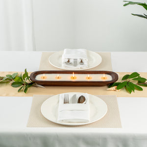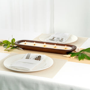 Elevate the ambiance of any dining experience with our Coco Casa Handmade Wood Dough Bowl Candles. These natural and handmade dough bowl candles feature a delightful spring hydrangea fragrance, creating an inviting atmosphere for your customers. The wooden bowls of these wax candles are not only sustainable but also reduce waste, as it's crafted from reclaimed materials that would have otherwise ended up in a landfill. With five wooden wicks, these zinc-free candles provide a soothing crackling sound as they burn. The unique double wax blend of soy and coconut wax ensures that these candles burn for up to 20 hours. These handmade scented candles are not only an eco-friendly choice but also a stylish addition to any foodservice environment. The wooden bowls of these scented candles can be reused after the candles are fully used. These candles are commercially compostable and biodegradable, ensuring a minimal environmental impact. Measuring 17.75 inches in length by 5.5 inches in width by 2 inches in height, these candles in wooden bowls act as a perfect centerpiece for any table setting. Sold in a 10 count box. This item will only degrade outside of the traditional solid waste stream.