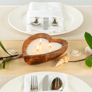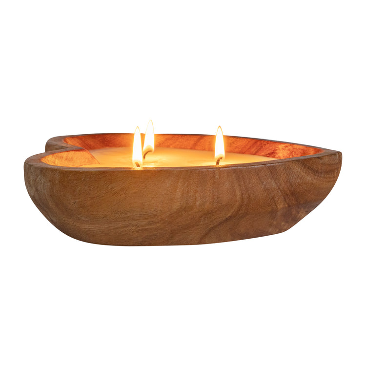 HANDMADE WOOD HEART DOUGH BOWL CANDLE - CINNAMON