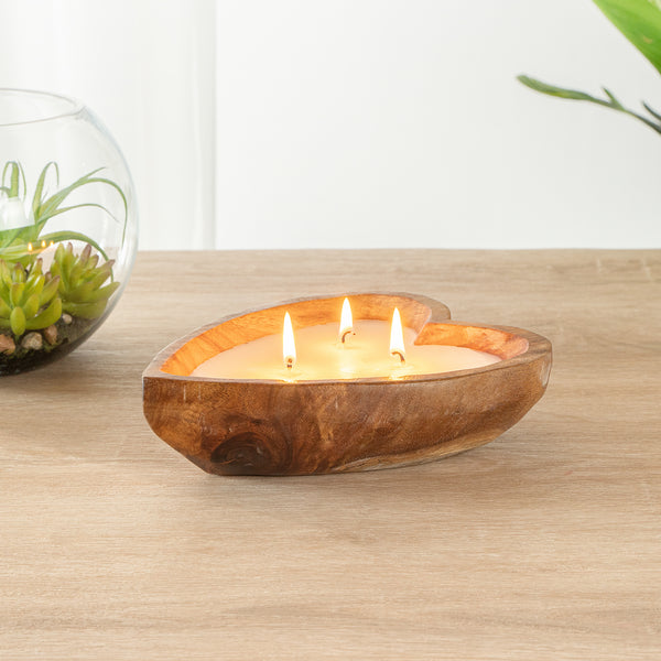HANDMADE WOOD HEART DOUGH BOWL CANDLE - CINNAMON