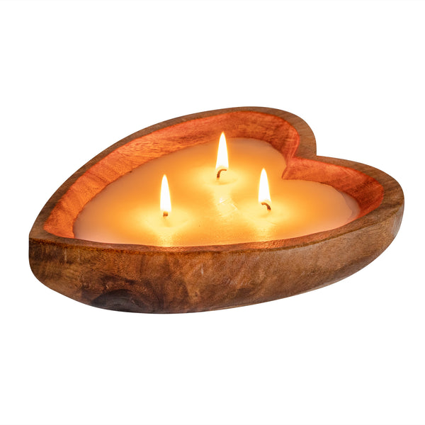 HANDMADE WOOD HEART DOUGH BOWL CANDLE - COCONUT MANGO