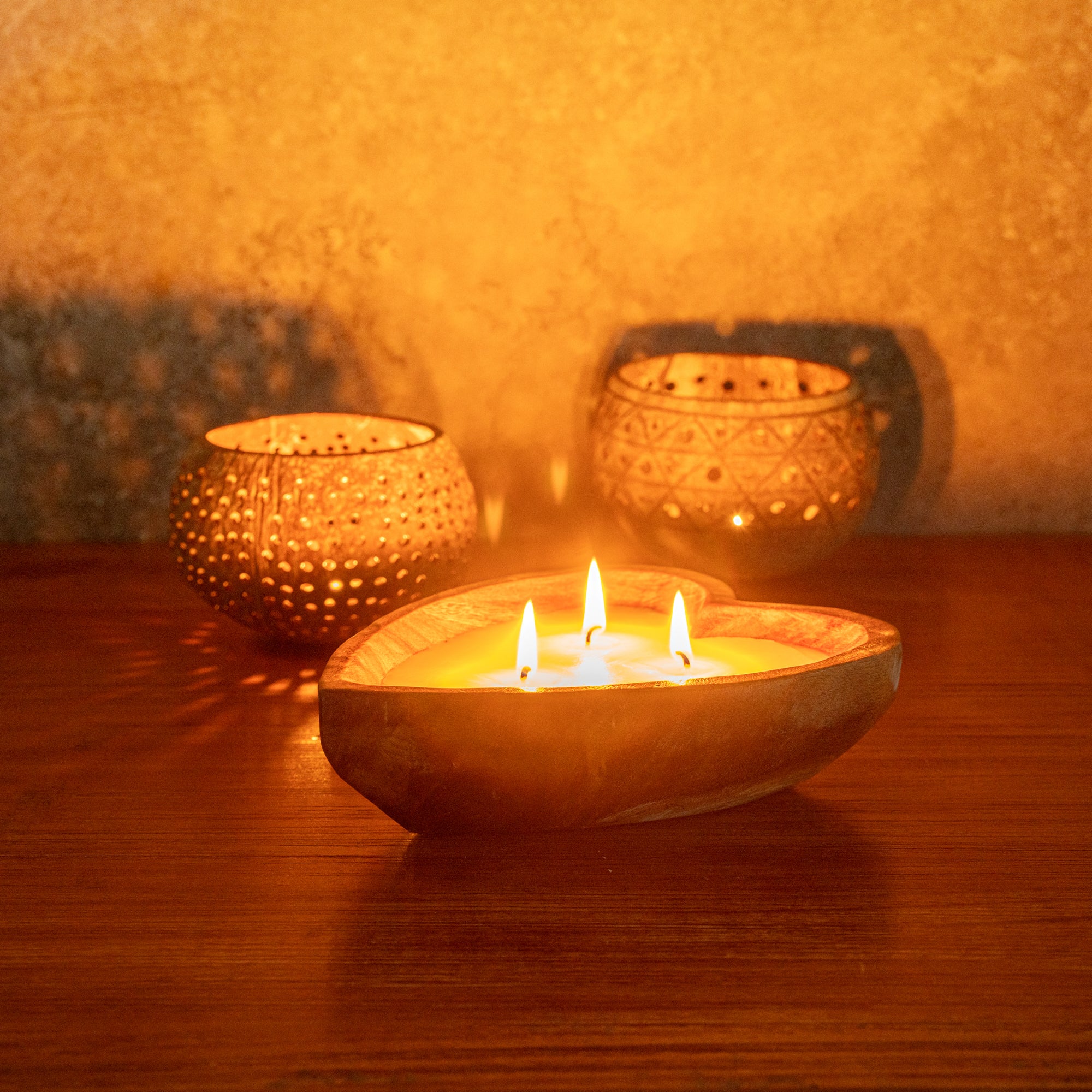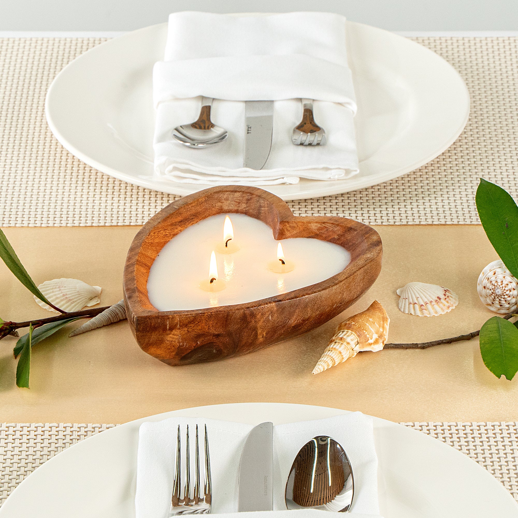 HANDMADE WOOD HEART DOUGH BOWL CANDLE - JASMINE
