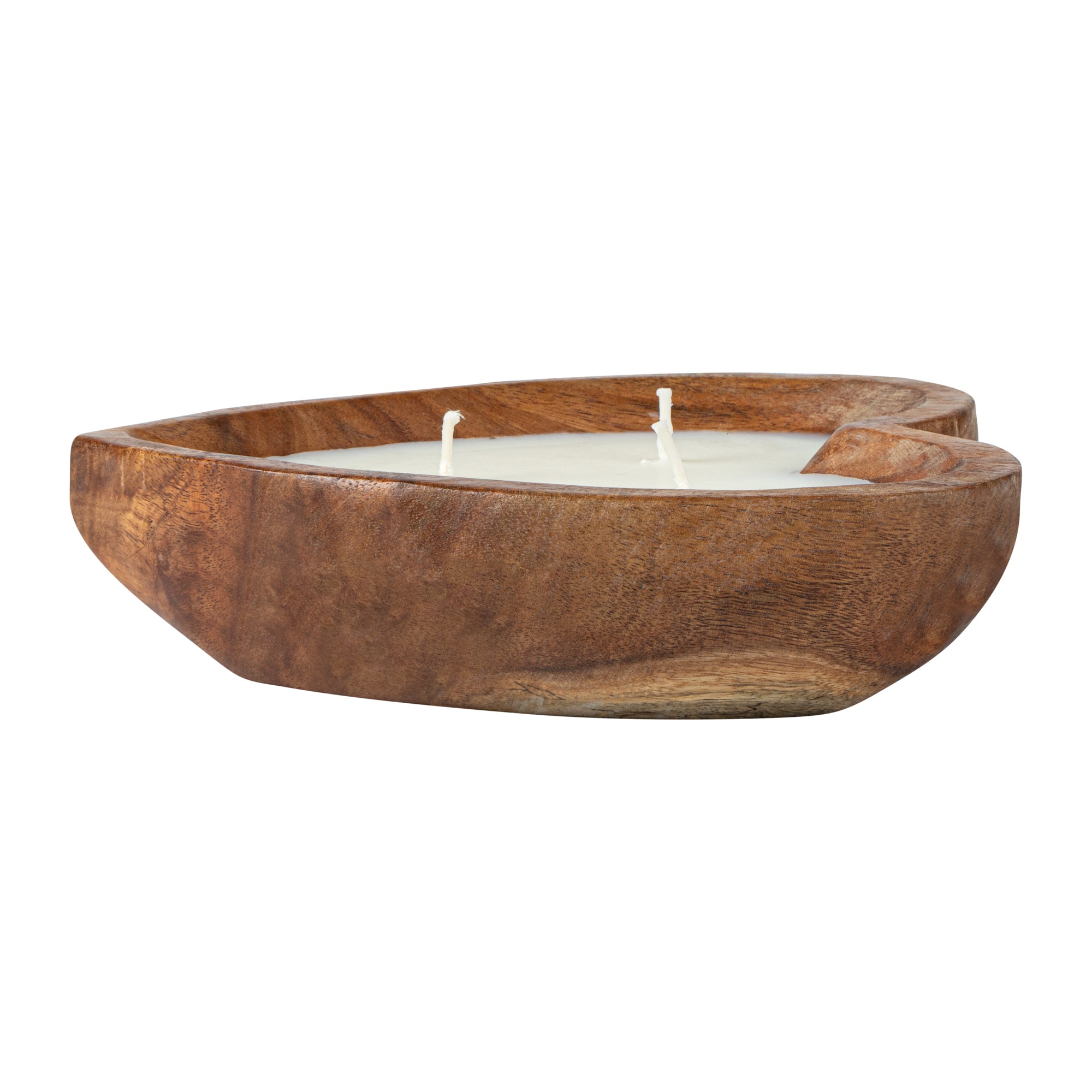 HANDMADE WOOD HEART DOUGH BOWL CANDLE - SANDALWOOD