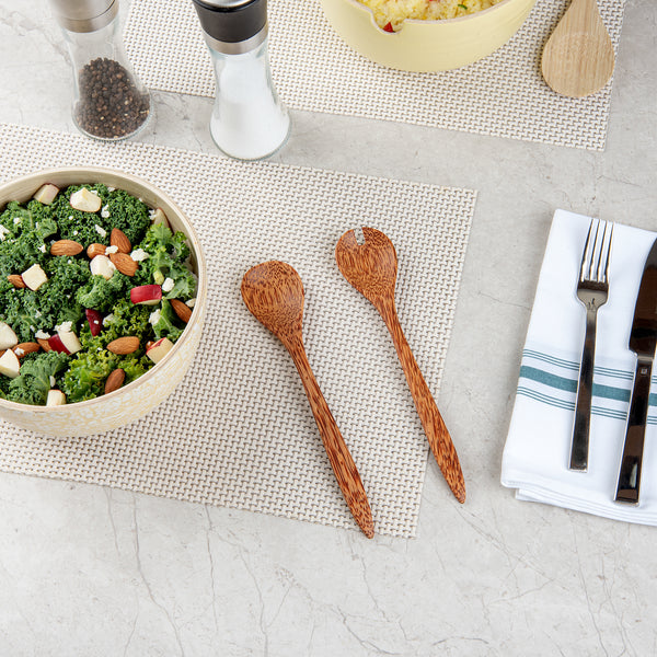 Enhance your dining presentation with our Coco Casa Natural Handmade Coconut Serving Utensil Set. These serving spoons combine natural coconut utensil design, offering an eco-friendly alternative to traditional serving tools while enhancing dish presentation with their polished finish. Greaseproof and suitable for both hot and cold dishes, these biodegradable coconut utensils make serving meals a breeze. With a length of 9.5 inches, this coconut utensil set is versatile for both cold salads and hot desserts, making it a valuable addition to any catering event or buffet line. Sold in a 2 count box. These items will only degrade outside of the traditional solid waste stream.