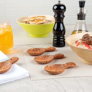 Enhance your eco-friendly dining experience with sustainable tableware. The Coco Casa Coconut Serving Spoon, crafted from natural coconut shell, is an eco-friendly and biodegradable option, perfect for aligning with sustainability initiatives in your restaurant. Featuring a greaseproof design, this spoon maintains a pristine condition even when used with oily dishes, ensuring efficient service in any foodservice operation. Handmade craftsmanship gives each spoon a unique, rustic aesthetic, enhancing presentations and elevating the dining experience. With a lacquered finish, this spoon adds an aesthetic gloss to every dish, making your culinary creations truly shine. Its durable coconut construction withstands daily kitchen rigors, offering long-lasting performance that withstands the demands of busy kitchens. Measuring 5 inches in length, it is lightweight and easy to handle, providing comfort and ease of use for both staff and patrons. Each order includes 40 Coco Casa Coconut Spoon.