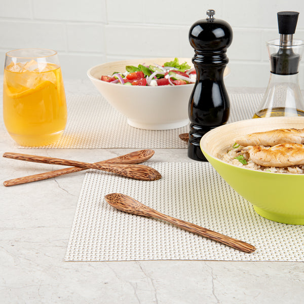 Enhance your dining experience with our Coco Casa Natural Handmade Coconut Spoons. These handcrafted serving spoons are made from natural coconut shells, providing a unique and sustainable alternative to traditional utensils, perfect for elevating the presentation at any event. With their biodegradable utensil properties, they support sustainability initiatives, reducing environmental impact. Measuring 7.75 inches in length, these greaseproof spoons are heat-safe, enabling the serving of a diverse range of menu items while maintaining their integrity. Their smooth, polished finish adds a rustic charm, ensuring a comfortable grip and enhancing the table setting’s aesthetic appeal. Sold in a 4 count box. These items will only degrade outside of the traditional solid waste scommercially compostable tream.