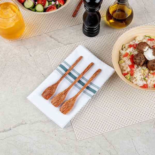 Enhance your dining experience with eco-friendly elegance. The Coco Casa Natural Handmade Coconut Spoon combines artisanal craftsmanship with sustainability, offering a coconut shell spoon handcrafted from natural coconut shells. Its greaseproof design ensures it remains pristine even after serving oily dishes, making it ideal for eco-conscious restaurants. The coconut utensil features a blunt end that guarantees smooth and controlled serving, providing safety for guests and versatility for a variety of dishes. With a lacquered finish, this coconut shell cutlery delivers a smooth and glossy texture, adding an aesthetic appeal to your table settings. Measuring 7 inches in length, this biodegradable and compostable spoon is lightweight, facilitating easy handling for staff during busy service times. Choose this coconut shell spoon to reinforce your commitment to sustainability and leave a lasting impression on diners. Each order includes 4 Coco Casa Natural Handmade Coconut Spoons.
