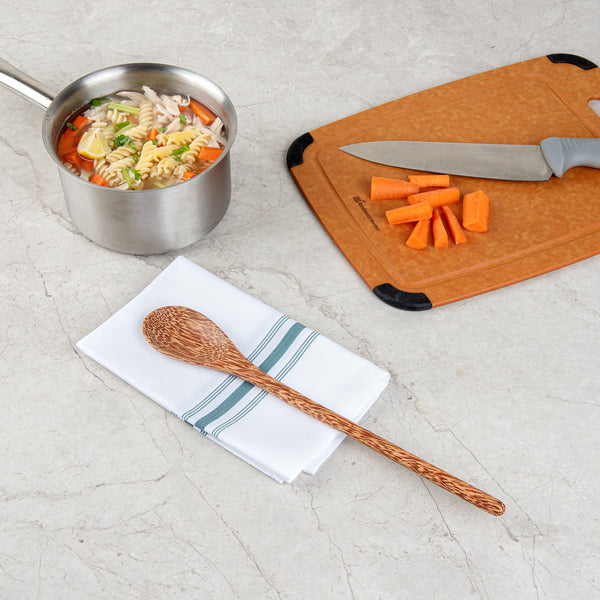 Enhance your foodservice with our Coco Casa Natural Handmade Long Handled Coconut Spoons. Biodegradable serving spoons offer a handcrafted design from coconut shells, providing a sustainable and visually unique serving option. These handmade coconut spoons feature a long handle measuring 14.25 inches, ensuring easy access to deep containers and large dishes, enhancing the efficiency and convenience for foodservice professionals. Their heat-resistant properties make them ideal for serving hot soups or stews without compromising integrity. The durable coconut material withstands daily kitchen rigors, making it a reliable choice for frequent use. Greaseproof design maintains a pristine condition even after serving oily dishes, ensuring a clean and appealing presentation. Sold in a 10 count box. These items will only degrade outside of the traditional solid waste stream.
