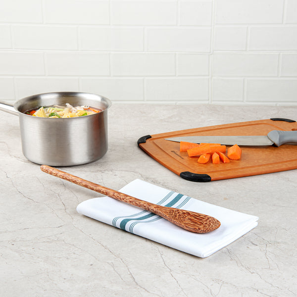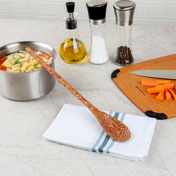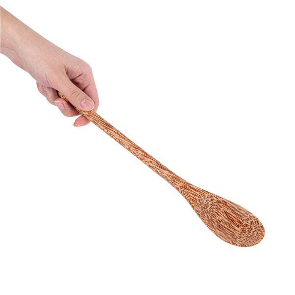 Enhance your foodservice with our Coco Casa Natural Handmade Long Handled Coconut Spoon. This biodegradable serving spoon offers a handcrafted design from coconut shells, providing a sustainable and visually unique serving option. This handmade coconut spoon features a long handle measuring 14.25 inches, ensuring easy access to deep containers and large dishes, enhancing the efficiency and convenience for foodservice professionals. Its heat-resistant properties make it ideal for serving hot soups or stews without compromising integrity. The durable coconut material withstands daily kitchen rigors, making it a reliable choice for frequent use. Greaseproof design maintains a pristine condition even after serving oily dishes, ensuring a clean and appealing presentation. Sold in a 1 count box. This item will only degrade outside of the traditional solid waste stream.