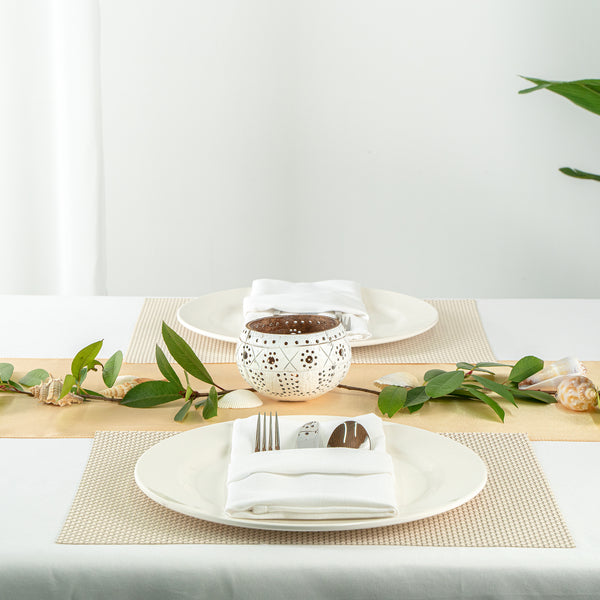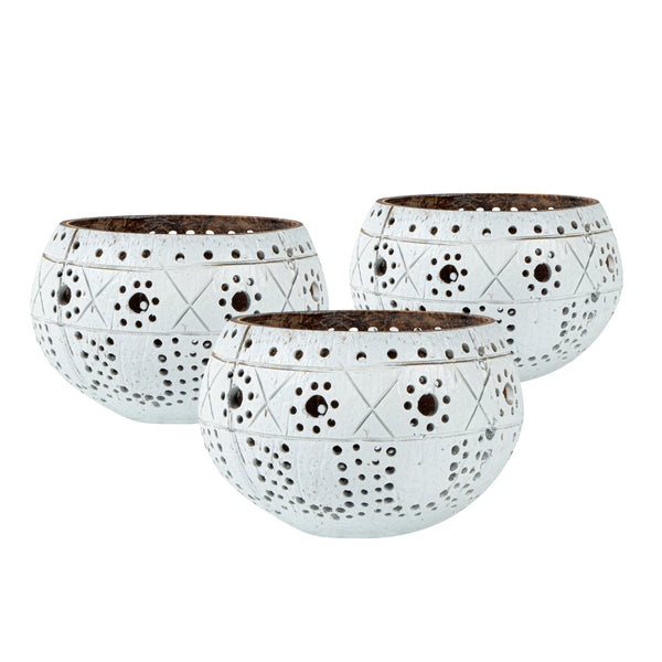 These coconut shell candle holders are handmade from coconut shells and are crafted with charming patterns. Elegance redefined!