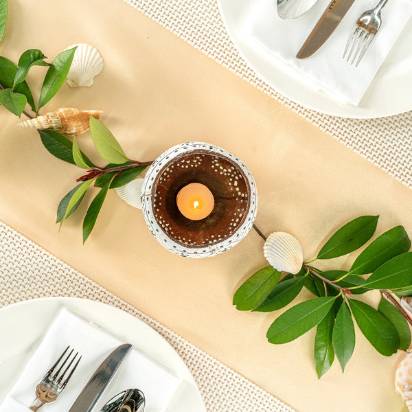 To let you pick the perfect candle holder for your theme and tablescapes, these coconut bowl candle holders are available in a variety of patterns and colors. Elevate your space effortlessly.