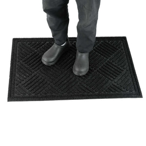 Keep dirt and debris outside with our Comfy Feet Black Heavy-Duty Outdoor Floor Mat. Featuring a textured diamond pattern, this polypropylene floor mat captures moisture and debris in its ridges to prevent unsightly messes in your home or establishment. This heavy-duty outdoor mat has a non-slip design that prevents accidental slips or falls and reliably stays in place without shifting. Great for outdoor use, this non-slip entryway mat is designed to prevent unsightly messes and dirt on clean floors while showcasing its minimalist look. The durable construction of this entrance may withstand rigorous use in high-traffic areas. This doormat measures 36 inches long by 24 inches wide. Sold in a 1 count box.