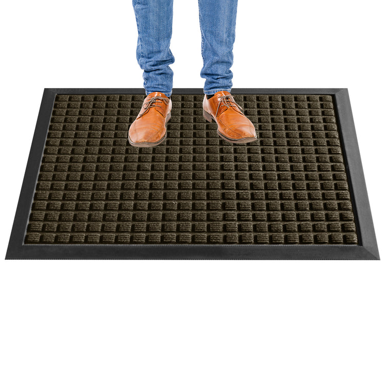 Take a step in the right direction with our Comfy Feet Brown Heavy-Duty Carpet Floor Mat. Made from durable polypropylene, this outdoor mat is stain and moisture-resistant to maintain its high-quality appearance for long-lasting use. The waffle pattern of this doormat locks in the dirt to keep your floors free from unwanted stains and debris. This entryway mat has a non-slip design to prevent slips and falls in your home or establishment. Featuring a non-skid backing, this carpet floor mat stays in place without shifting or sliding in slippery areas. This indoor mat has a brown finish that adds a sophisticated look to any entryway or walkway. Measuring 36 inches long by 24 inches wide, this lobby mat is perfect for various types of entrances. Shipped in a 1 count box.