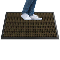 Impress guests at your entryway with our Comfy Feet Brown Heavy-Duty Carpet Floor Mat. Made out of moisture and stain-resistant polypropylene, this entryway mat efficiently captures moisture to prevent messes and stains on your floor. The non-slip backing keeps this brown doormat in place on slippery areas and prevents your clients, guests, and employees from tripping. This indoor mat has a waffle design on its surface to effectively scrape off dirt and debris from shoes and keep your floors clean. The coffee brown finish on this floor mat creates a warm and inviting entryway. This outdoor mat measures 60 inches long and 36 inches wide. Shipped in a 1 count box.