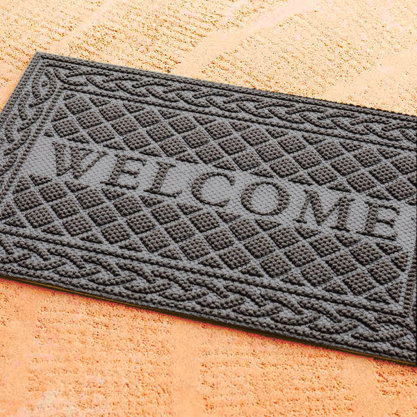 Invite anyone to step over your threshold with our Comfy Feet Gray Polypropylene Welcome Mat. With a high-quality construction, this entry doormat effectively contains moisture and is easy to clean. The tough polypropylene material of this gray floor mat traps soil and dirt to keep your interior floors spotless. Featuring an elegant gray finish, this chic welcome mat effortlessly enhances the look of your entryway. The "Welcome" message displayed on this outdoor mat is surrounded by a wonderful diamond pattern and enclosed in detailed edges. This beautiful entrance mat is the perfect invitation to your home or establishment. Measuring 36 inches long by 24 inches wide, this gray mat is perfect for display at your entrance. Sold in a 1 count box.