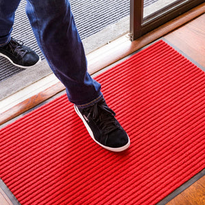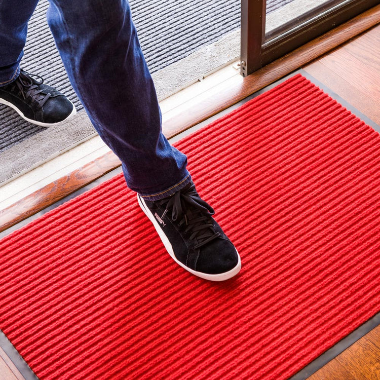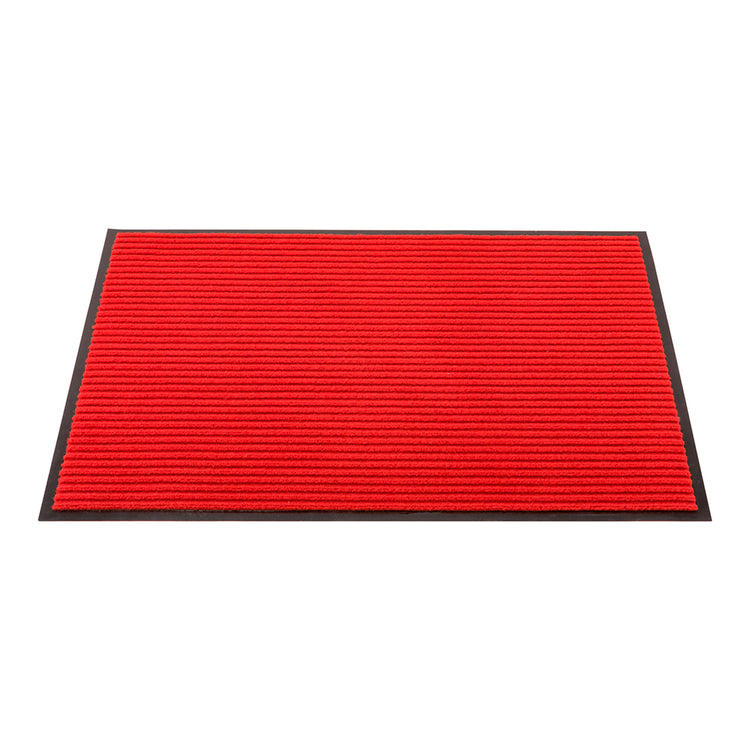 Capture dirt before it gets indoors with our Comfy Feet Red Carpet Floor Mat. This floor mat is crafted from high-quality polyester and scrapes off dirt from shoes and traps it in place to maintain your clean floors, ideal for outdoor or indoor use. The ribbed design of this entrance mat effectively captures debris and prevents excess water from spilling out onto your floors. Featuring a vinyl backing, this entryway mat stays in one place and promotes a safe environment at your hotel, cafe, restaurant, or other foodservice establishment. This doormat has a durable construction that preserves its premium appearance for long-lasting commercial use. For an easy cleaning process, this office floor mat can be vacuumed or hosed with water. This outdoor mat measures 36 inches long by 24 inches wide. Sold in a 1 count box.