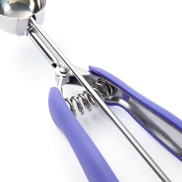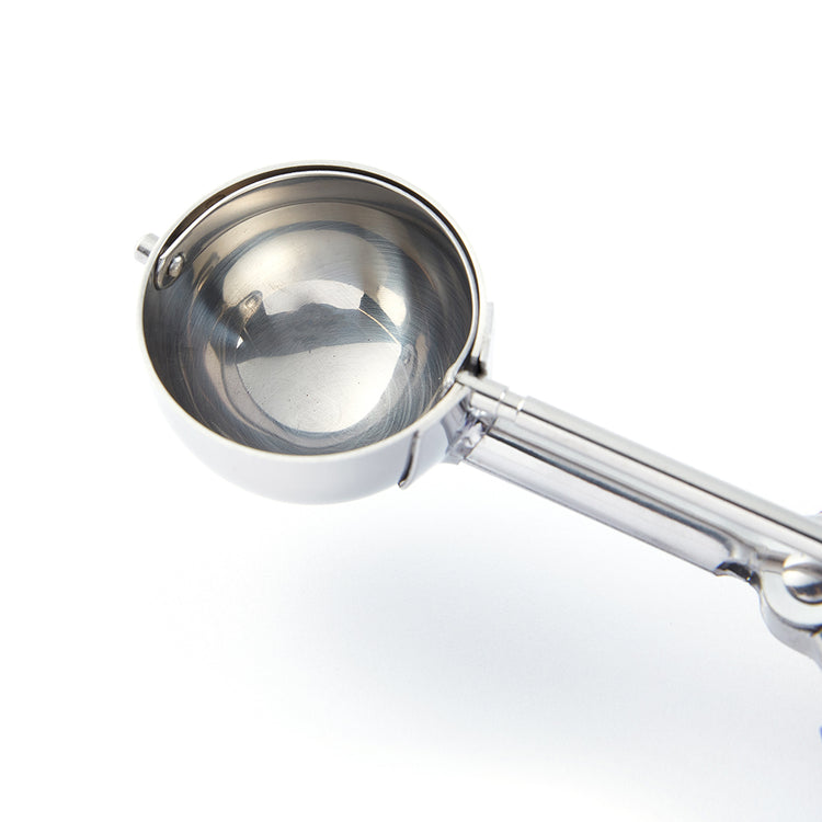 - Spring-loaded handle enables effortless ice cream serving
