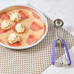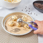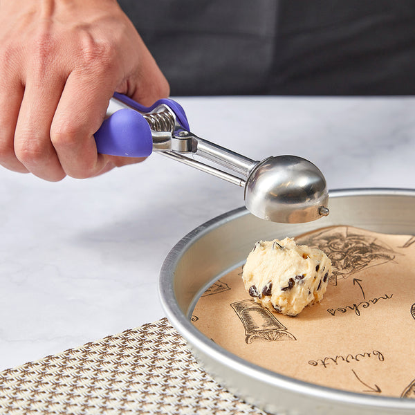 The built-in blade of these kitchen scoops effectively scrapes off every bit of ice cream to create perfectly round mounds and prevent waste. No more excess ice cream left on the scoop!