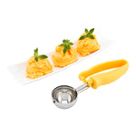 The built-in blade of these kitchen scoops effectively scrapes off every bit of ice cream to create perfectly round mounds and prevent waste. No more excess ice cream left on the scoop!