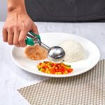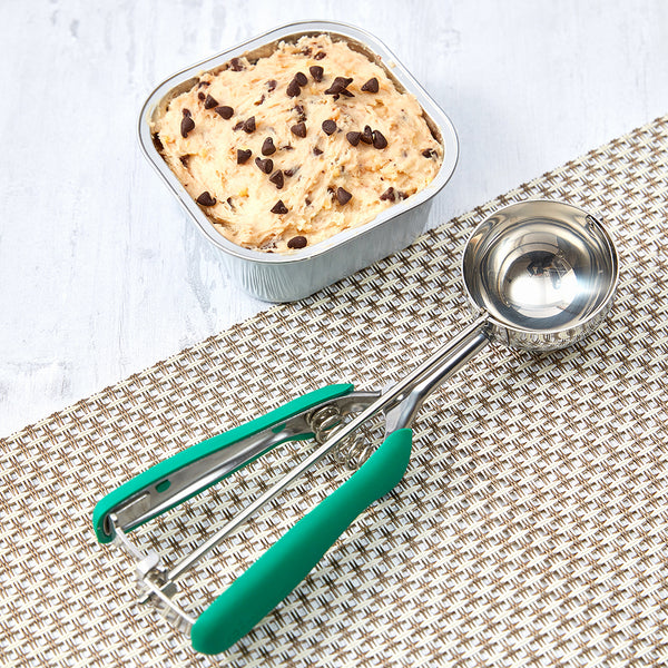 The built-in blade of these kitchen scoops effectively scrapes off every bit of ice cream to create perfectly round mounds and prevent waste. No more excess ice cream left on the scoop!