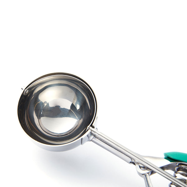 Ensure effortless portion control with a spring-loaded handle. The Comfy Grip Spring-Loaded Ice Cream Scoop is designed to simplify servings with its ergonomic spring-loaded handle that eases the process of scooping ice cream and sherbet, making it an essential tool for any dessert shop. This portion scoop, featuring a 3.25-ounce capacity, guarantees consistent servings that aid in cost management and enhance the uniformity of your presentations. Its stainless steel construction not only provides durability and resistance to corrosion but also ensures this scoop withstands the rigors of a bustling commercial kitchen. The green handle seamlessly integrates with your shop's color-coded system, preventing cross-contamination and streamlining operations. With its dishwasher-safe design, it maintains hygiene standards. Upgrade your kitchen tools with this indispensable stainless steel scoop and experience enhanced efficiency. Each order includes 1 Comfy Grip Spring-Loaded Ice Cream Scoop.