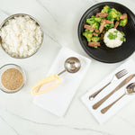 - Ambidextrous handle scoops food effortlessly reducing fatigue