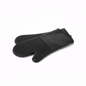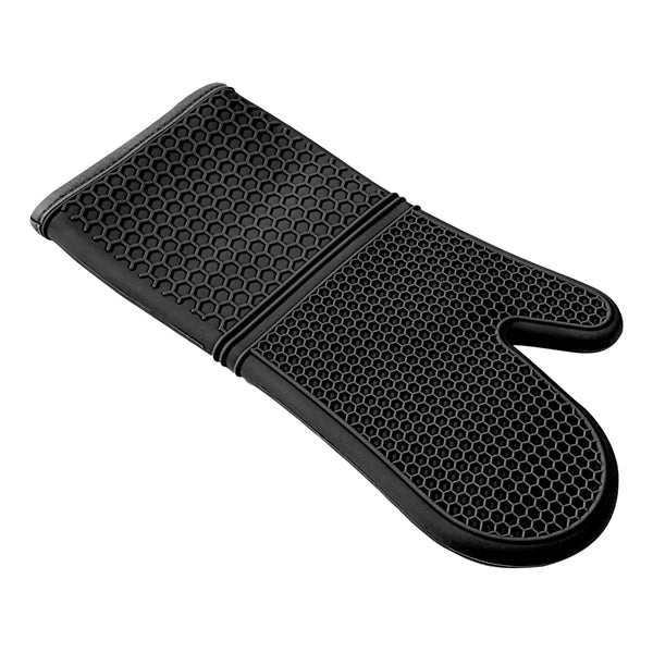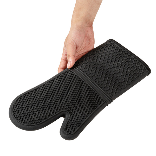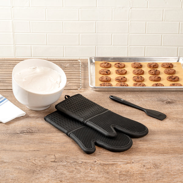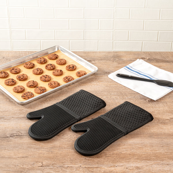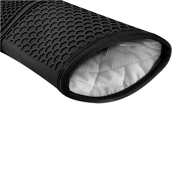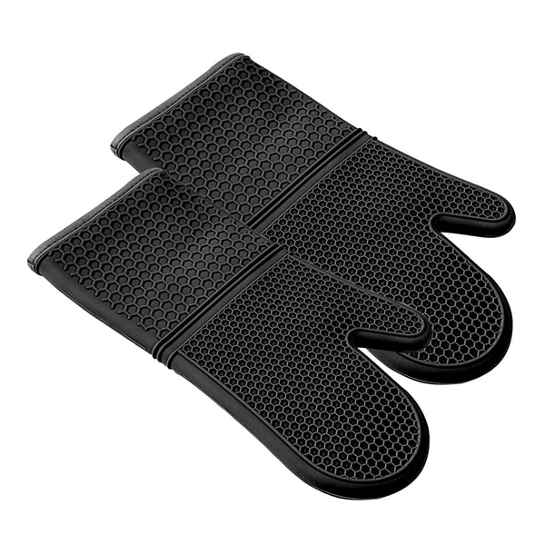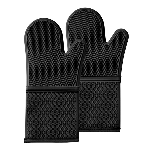 BLACK SILICONE 2-PIECE OVEN MITT SET - HEAT-RESISTANT
