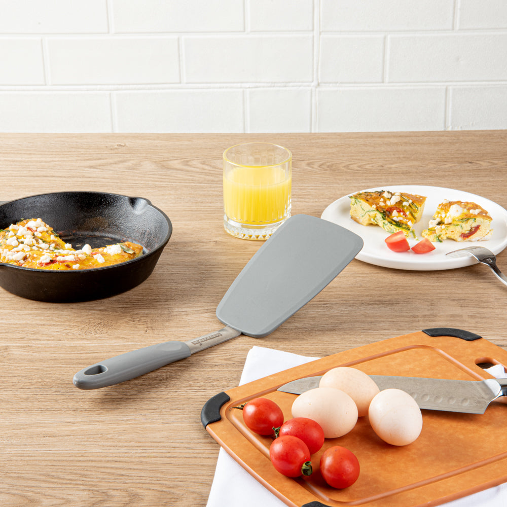 Conveniently use these silicone turners for flipping or turning pancakes, eggs, patties, or crepes. These solid spatulas easily reach the bottom of your pans.