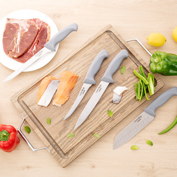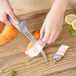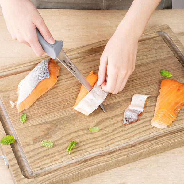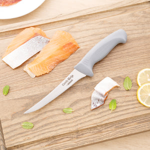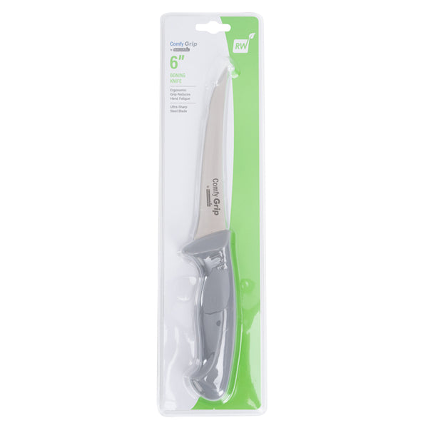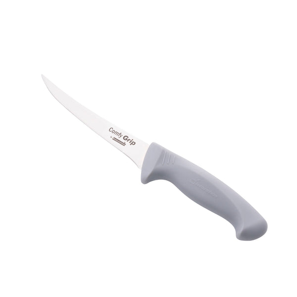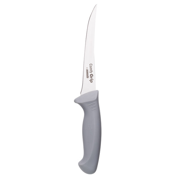 Achieve flawless meat preparation with our stainless steel boning knife. The Comfy Grip Non-Slip Stainless Steel Boning Knife features a 6-inch stainless steel blade that ensures precise control, allowing chefs to debone meats with clean cuts and minimal waste. Equipped with a TPE plastic handle, this meat deboning knife provides a non-slip grip for secure handling, significantly reducing hand fatigue during extended use. Its flexible blade design allows for effortless maneuvering around bones and joints, enhancing efficiency and performance in professional kitchens. The durable stainless steel construction ensures longevity and consistent performance, making it a reliable choice for high-volume kitchen environments. Additionally, the narrow blade design easily makes deep cuts in ingredients, perfect for detailed bone removal tasks. This flexible blade knife is easy to maintain, with a corrosion-resistant surface that simplifies cleaning and promotes hygiene. Sold in a 1 count box.