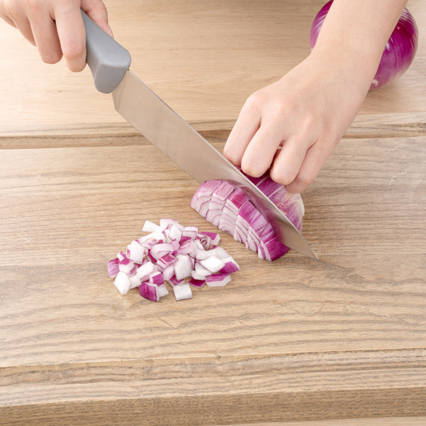 - Sharp edge promotes versatility for slicing, dicing, mincing, or chopping