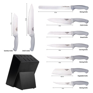 GRAY STAINLESS STEEL 9-PIECE KNIFE SET - WITH HOLDER