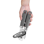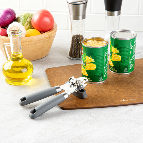 These stainless steel can openers feature a built-in bottle opener, avoiding the need for multiple gadgets and saving valuable space in your kitchen drawer. Can opener and bottle opener in one.