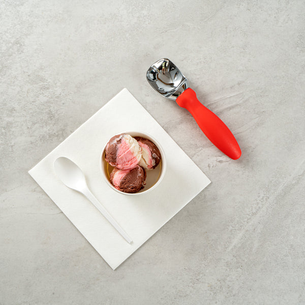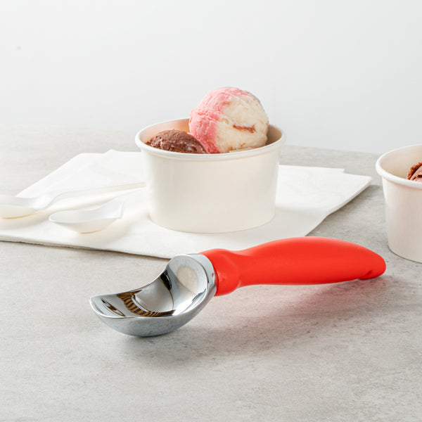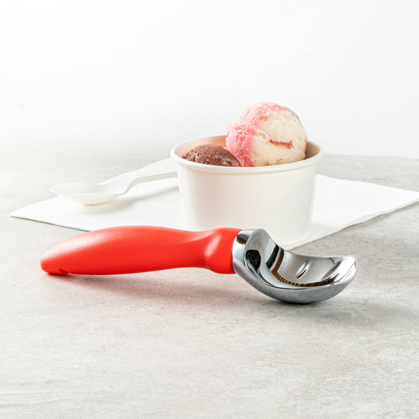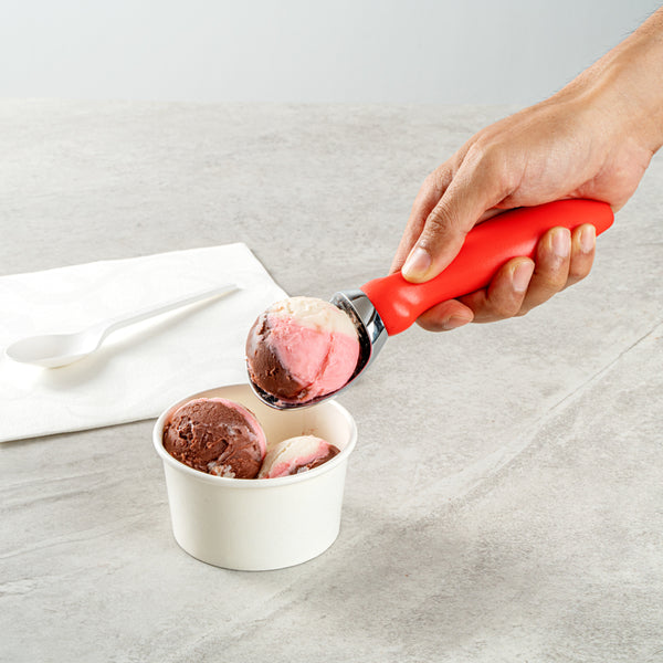 These classic ice cream scoops come with an easy-to-grip ergonomic plastic handle, delivering comfort and ease with each scoop. The handle features a notch to lift stubborn container lids.