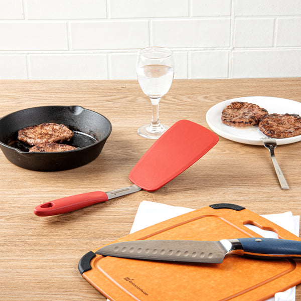 Conveniently use these silicone turners for flipping or turning pancakes, eggs, patties, or crepes. These solid spatulas easily reach the bottom of your pans.