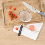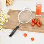 ROUND STAINLESS STEEL EXTRA FINE MESH STRAINER - WITH SILICONE HANDLE