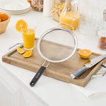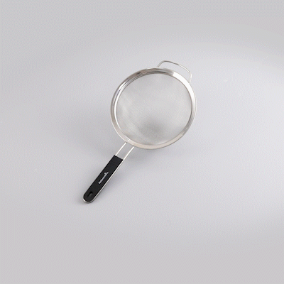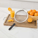 ROUND STAINLESS STEEL EXTRA FINE MESH STRAINER - WITH SILICONE HANDLE