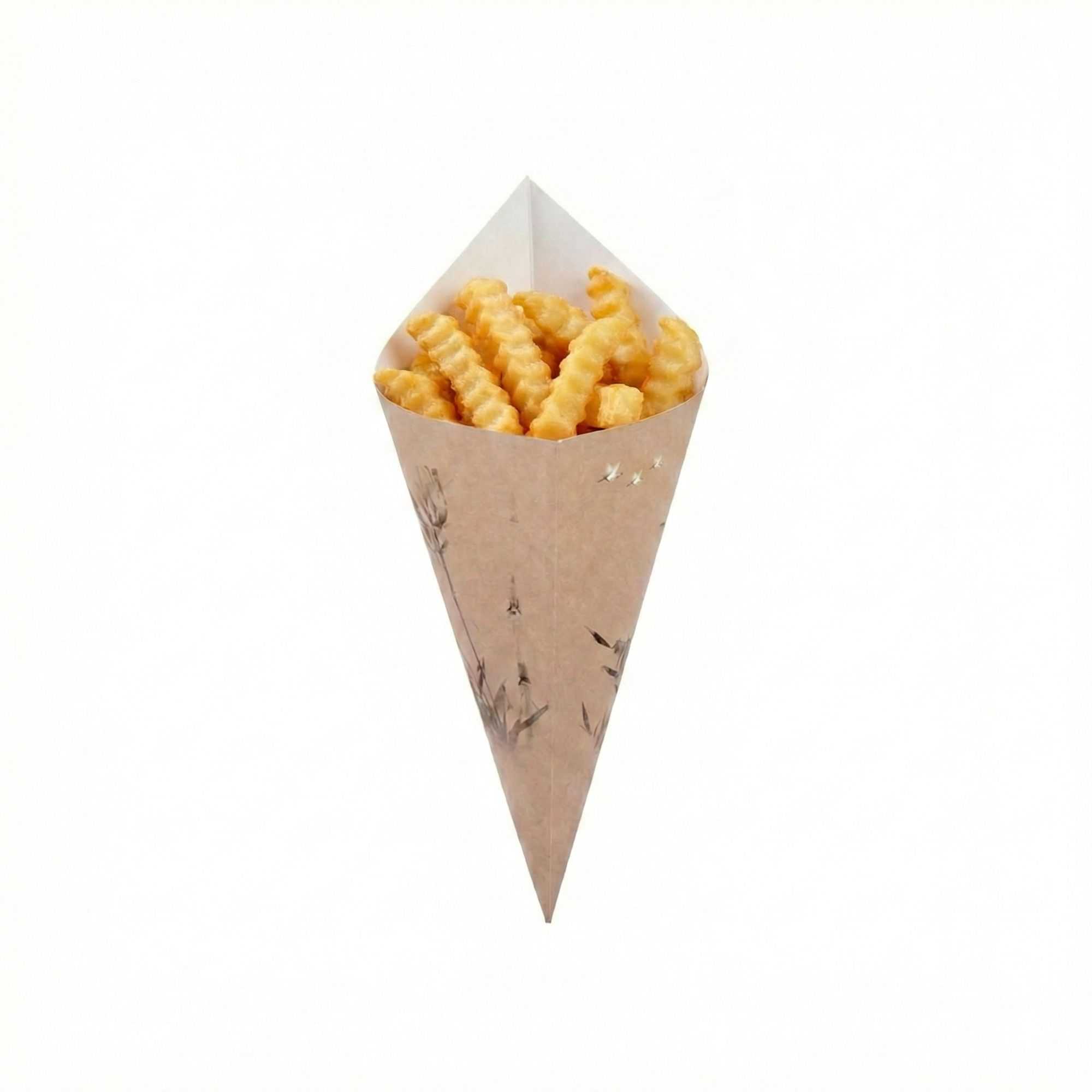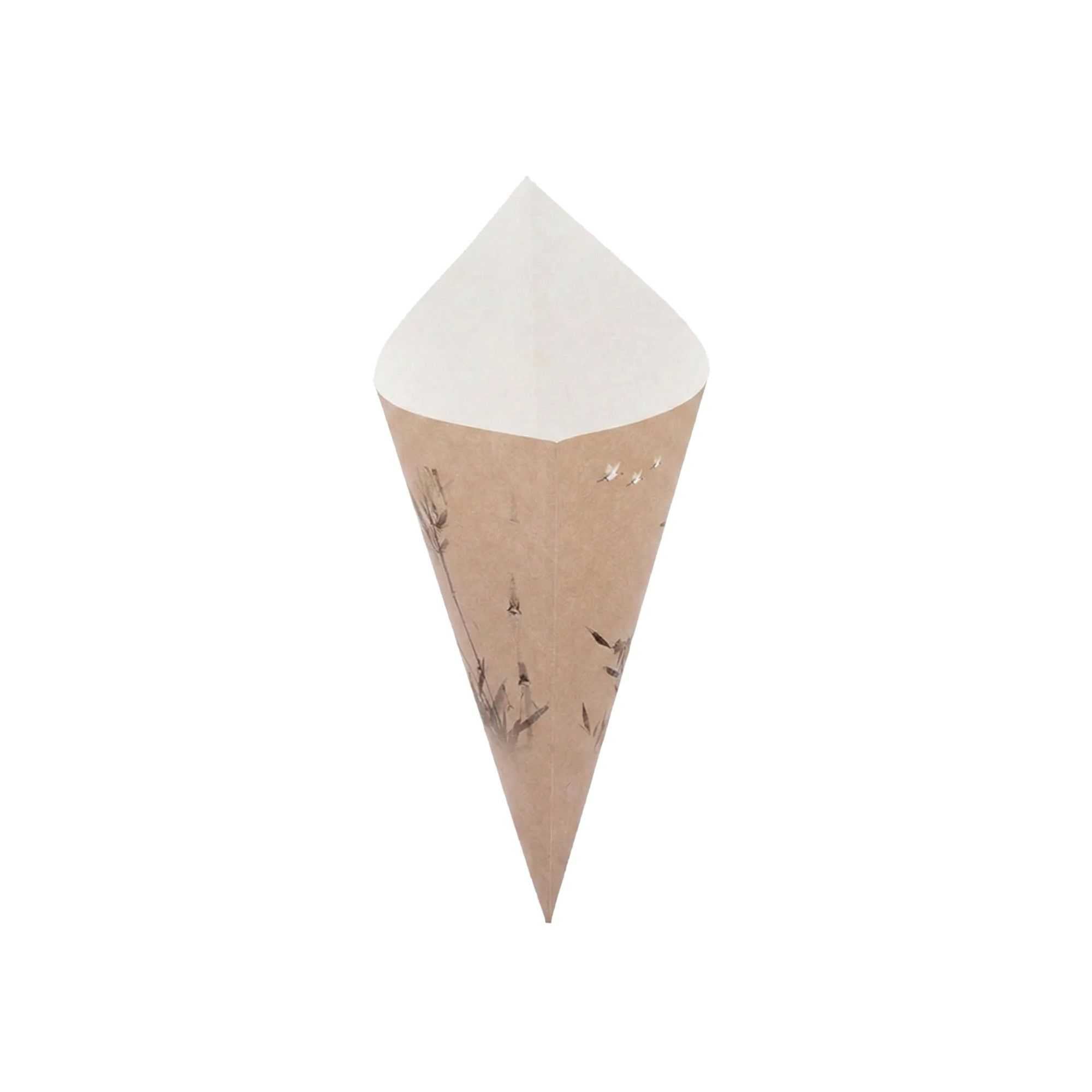 Serve buttery popcorn and fried onion rings using our Cone Tek Paper Food Cones. These food paper cones are made from premium heavyweight paper to hold your appetizers and desserts with ease. Featuring a stylish bamboo print, these popcorn paper cones are the perfect addition to any party, catered event, or other special occasion. These food paper cones can also be recycled for an eco-friendly disposal. These appetizer cones are coated with a grease-resistant lining to keep your mouthwatering treats from getting soggy. With an easy-to-hold design, these food paper cones are great for passing out warm or cold foods at events. For an elevated look, pair these popcorn paper cones with our collection of cone stands to beautifully display your treats. These appetizer cones measure 11.5 inches long and 5.5 inches wide and are shipped in a 100 count box. Cone stands are available and sold separately.