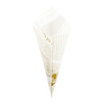 Make your snacks and sweets conveniently portable with these 5.9-inch Conetek Greaseproof Newsprint Food Cones. Featuring a comfortable handheld design, these paper cones provide an excellent mess-free serving solution for food truck or concession stand food. These stylish popcorn cones are constructed from premium greaseproof paper to resist messes and stay tough against greasy foods like french fries, caramel corn, and doughnut holes. With a total height of 5.9 inches, you can use these small paper cones for snacks, side dishes, desserts, and more. Each of these unique paper food cones is covered in a vintage-inspired newspaper print that looks great at buffets, bistros, and catered events. Each food cone measures 5.9 inches and is shipped in bulk in a 100-count box.