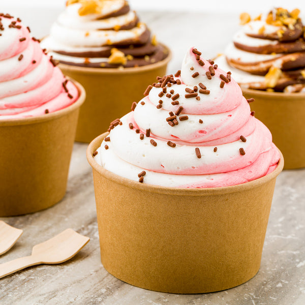 Great for serving hot or cold dishes! Crafted from thick paper, these dessert cups are durable and ideal for serving ice cream at a birthday party or warm chili at a cookoff.
