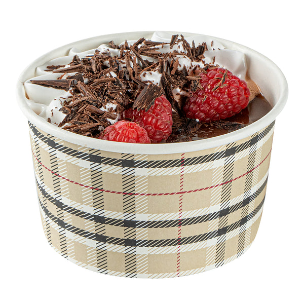 Great for serving hot or cold dishes! Crafted from thick paper, these dessert cups are durable and ideal for serving ice cream at a birthday party or warm chili at a cookoff.