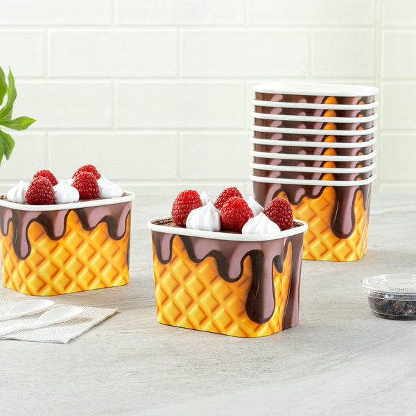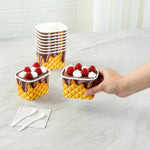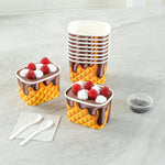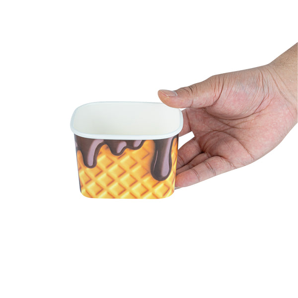 Elevate your service with leak-resistant beverage solutions. Coppetta Yellow Paper Cup offers a sturdy construction with a waterproof coating both inside and out, ensuring a mess-free experience while serving any 12 oz paper cup size drinks. Designed for versatility, this square paper to go cup is perfect for both hot and cold applications, allowing you to serve steaming soups and frozen desserts with ease. Made from recyclable materials, this disposable paper cup supports your eco-friendly initiatives without compromising on quality. Each cup measures 4.21 inches in length, providing ample space for a variety of treats. Enhance your foodservice operation with a reliable, grease-resistant, and freezer-safe option that meets your high standards. Each order includes 200 Coppetta Yellow Paper Cup.