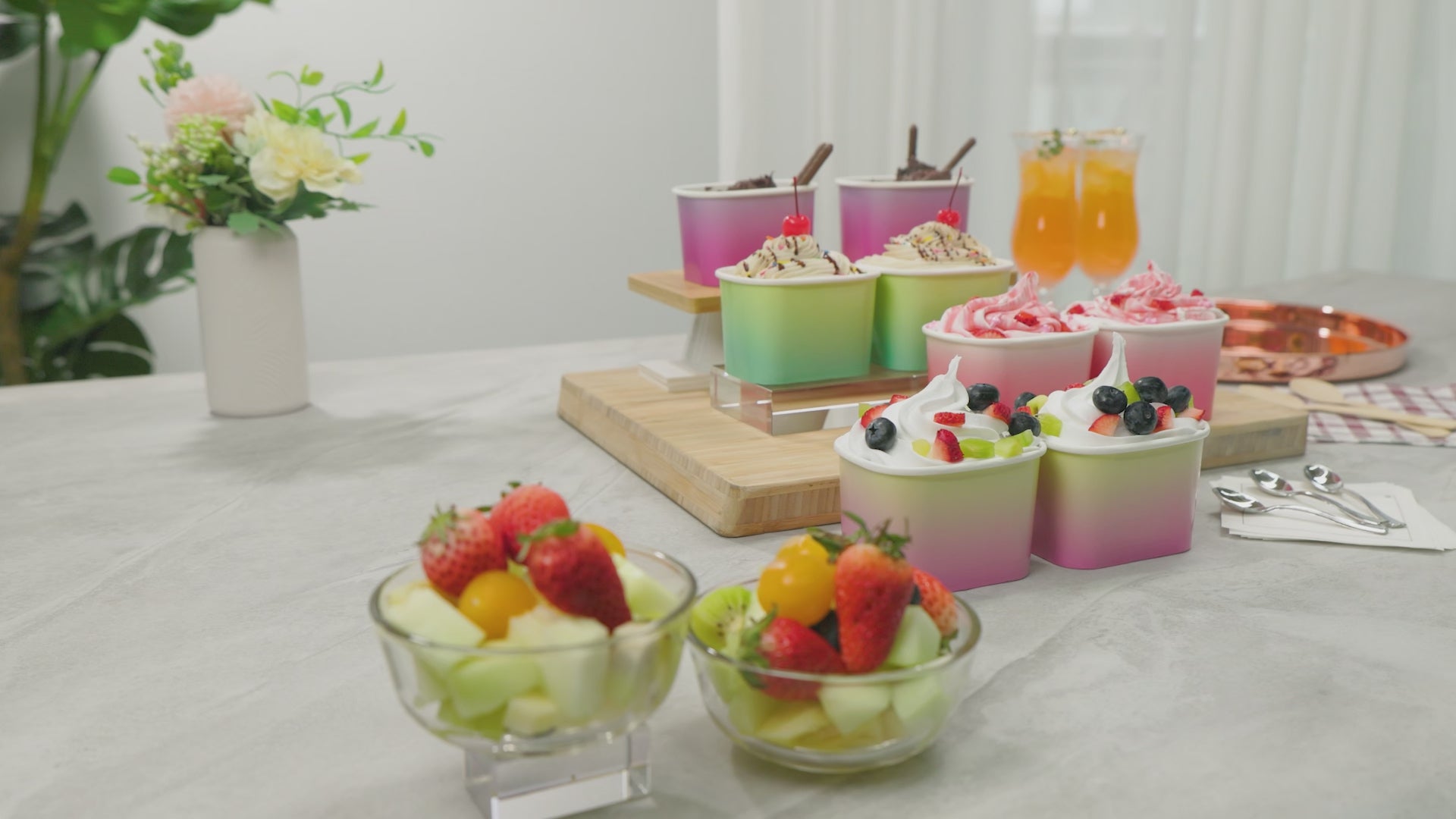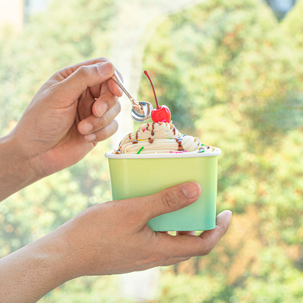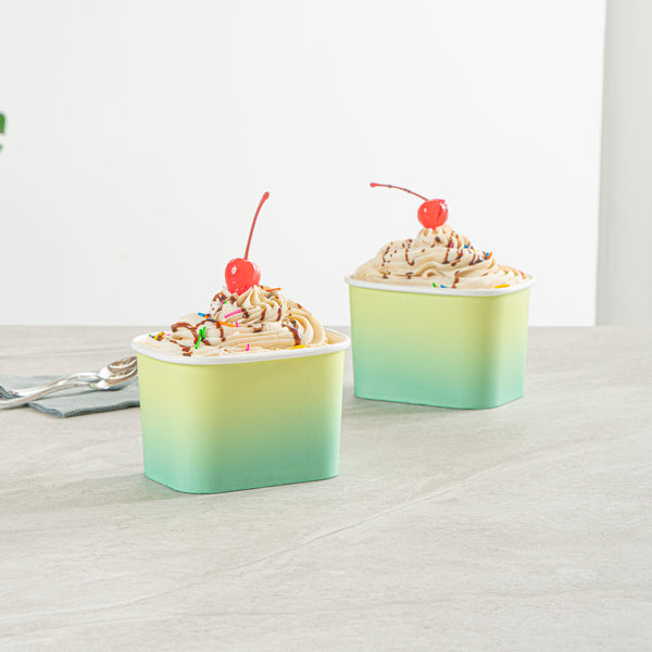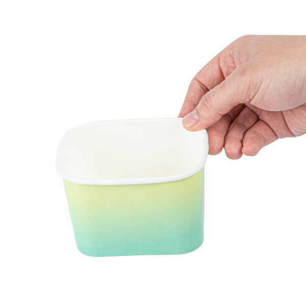 Enhance your beverage service with versatile and leak-proof solutions. The Coppetta Leak-Resistant Disposable Drink Cup combines a waterproof coating with durable paper construction, ensuring mess-free service and maintaining integrity for both hot and cold beverages. Its multi-purpose design accommodates a variety of drinks, from steaming coffee to creamy ice cream, making it an ideal coffee to go cup or ice cream serving cup for cafes and restaurants alike. Constructed from recyclable materials, this cup supports eco-friendly operations and disposal, appealing to environmentally conscious consumers. With a 12-ounce capacity and dimensions of 4.25 inches by 3.25 inches by 2.75 inches, it is perfectly sized for standard drinks, while the teal and green ombre pattern adds a vibrant touch to your presentation. Each order includes 200 Coppetta Leak-Resistant Disposable Drink Cups.