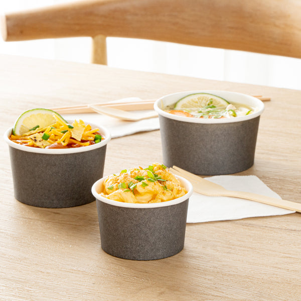 These disposable paper to go cups provide an ecologically-sustainable way to cleanup after eating. Enjoy your food with minimal impact on the environment.