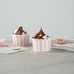 Great for serving hot or cold dishes! Crafted from thick paper, these dessert cups are durable and ideal for serving ice cream at a birthday party or warm chili at a cookoff.