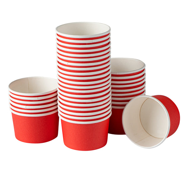 Ensure a clean presentation with grease-resistant convenience. The Coppetta Round Red Paper To Go Cup features a grease-resistant PE lining that prevents oil from soaking through, ensuring your dishes look appetizing upon arrival. This paper to go cup, with its 3-inch height, is crafted from durable paper, making it ideal for serving both hot and cold foods without compromising structural integrity. As a greaseproof paper cup, it offers reliable strength and is freezer-safe, accommodating a variety of foodservice needs. Its recyclable design supports eco-friendly operations, allowing you to serve your customers while being mindful of sustainability. Elevate your food presentation and operational efficiency with this disposable paper cup. Each order includes 200 Coppetta Round Red Paper To Go Cup.