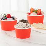 Great for serving hot or cold dishes! Crafted from thick paper, these dessert cups are durable and ideal for serving ice cream at a birthday party or warm chili at a cookoff.