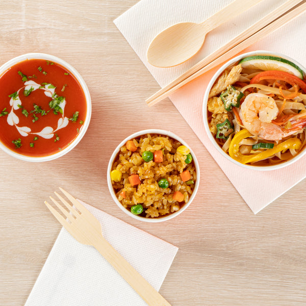 These disposable paper to go cups provide an ecologically-sustainable way to cleanup after eating. Enjoy your food with minimal impact on the environment.