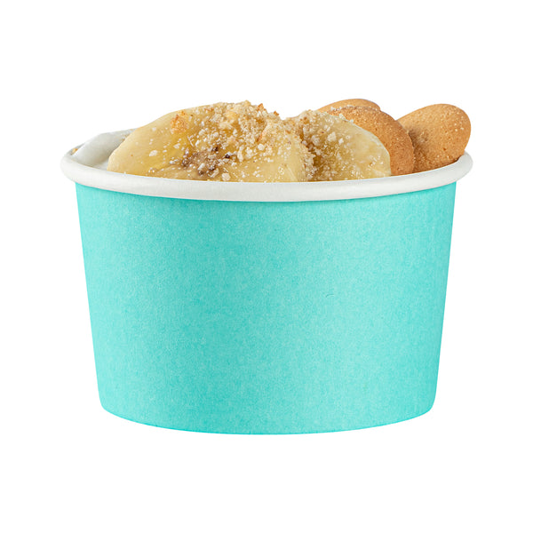 Great for serving hot or cold dishes! Crafted from thick paper, these dessert cups are durable and ideal for serving ice cream at a birthday party or warm chili at a cookoff.