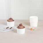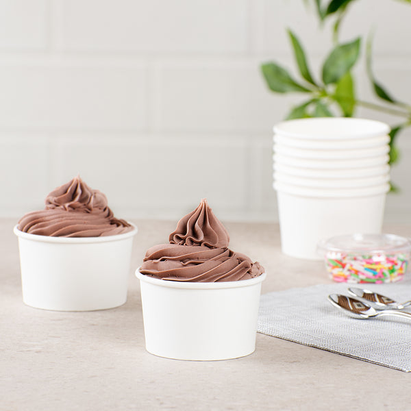 Great for serving hot or cold dishes! Crafted from thick paper, these dessert cups are durable and ideal for serving ice cream at a birthday party or warm chili at a cookoff.