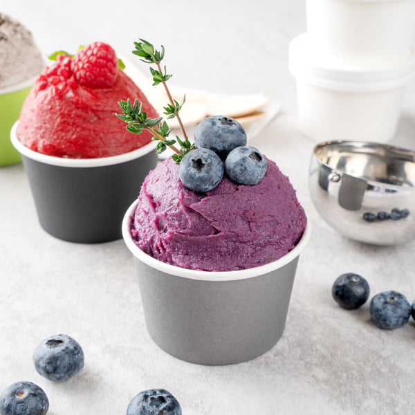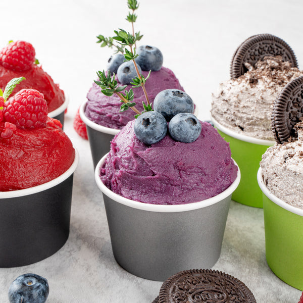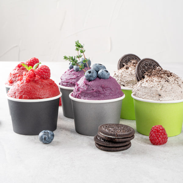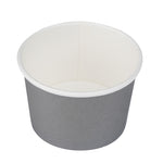 Serve delicious soups, salads, and other sides using our Coppetta 4-ounce Round Gray Paper To Go Cups. Made from premium paper, these frozen yogurt paper cups are perfect for serving cold desserts or hot appetizers at your foodservice establishment. These round food containers have a classic gray finish that allows you to serve snacks with style. The leak-resistant construction and rolled rim of these premium paper frozen dessert cups are great for avoiding messy spills when serving guests. These gray cups for ice cream are stackable for space-saving storage. Pair these takeaway dessert cups with our matching tight-fitting lids (SKU: RWA0777K-50). Each of these round ice cream cups can hold up to 4 ounces of soups or ice cream. These disposable ice cream cups measure 3 inches in diameter by 2.4 inches in height. Sold in a 50 count box. Lids are available and sold separately.